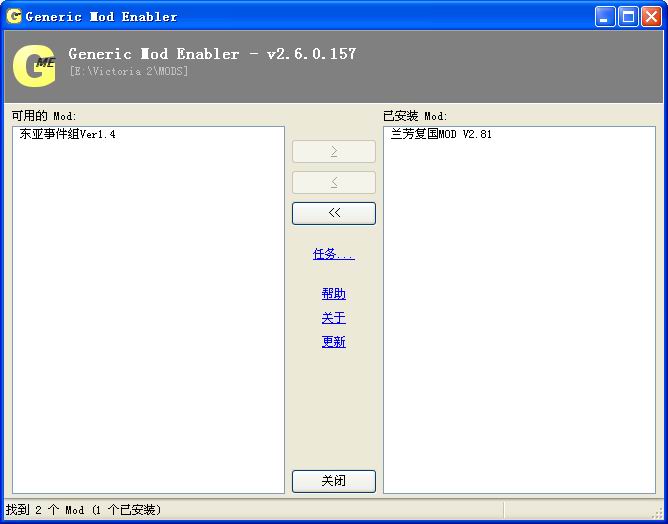 4. 安装Mod,在左边的MOD列表中选中要安装的MOD,点击中间的">"按钮即可。