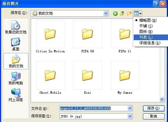 最近不知道系统又吃错了什么药,每次使用IE浏览器(含世界之窗之类)的“图片另存为”,当选择保存路径时,文件查看方式总是“缩略图”,每次我手动改成“列表”,下次又变回来