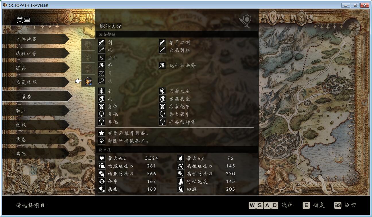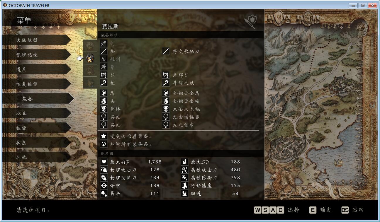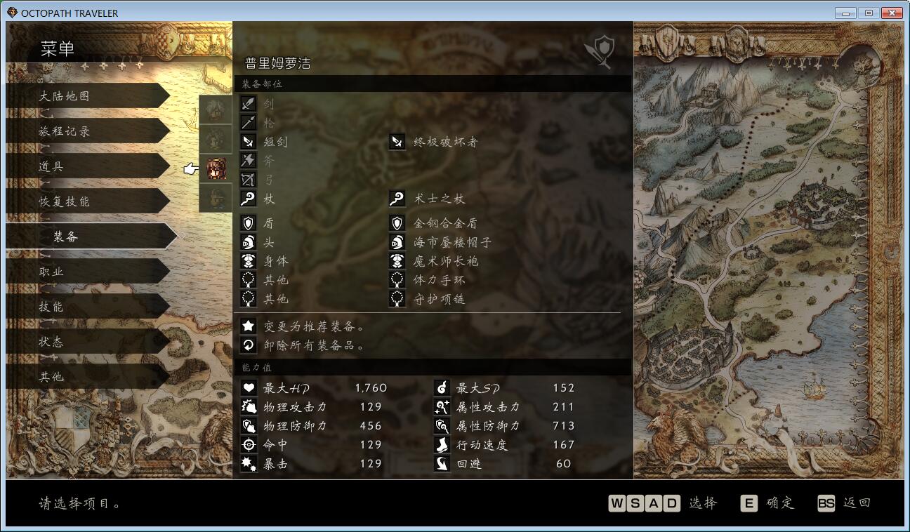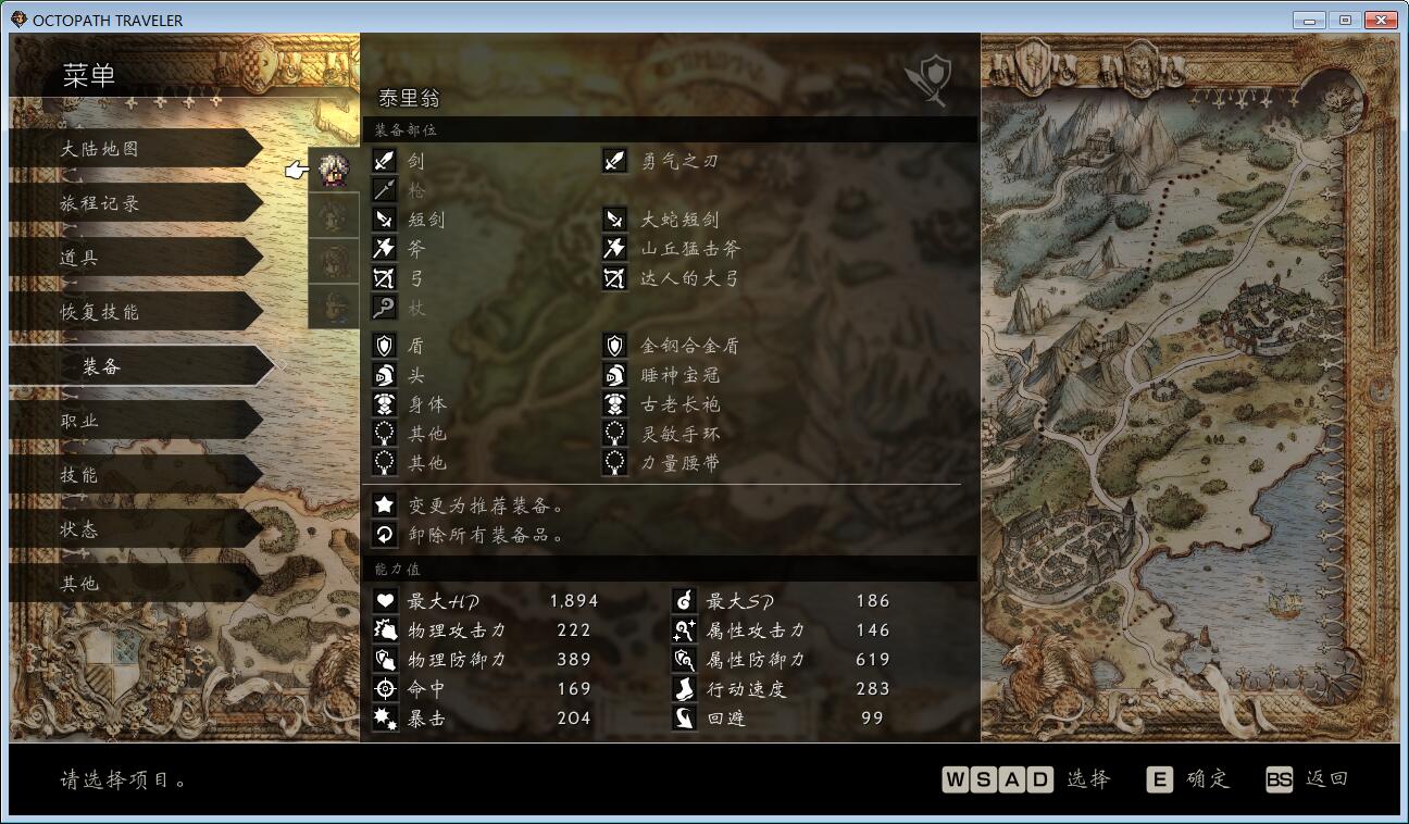 第一章花了不少时间查攻略,找装备,开地图,下图就是过第一章时盗贼、学者、舞女、剑士的装备