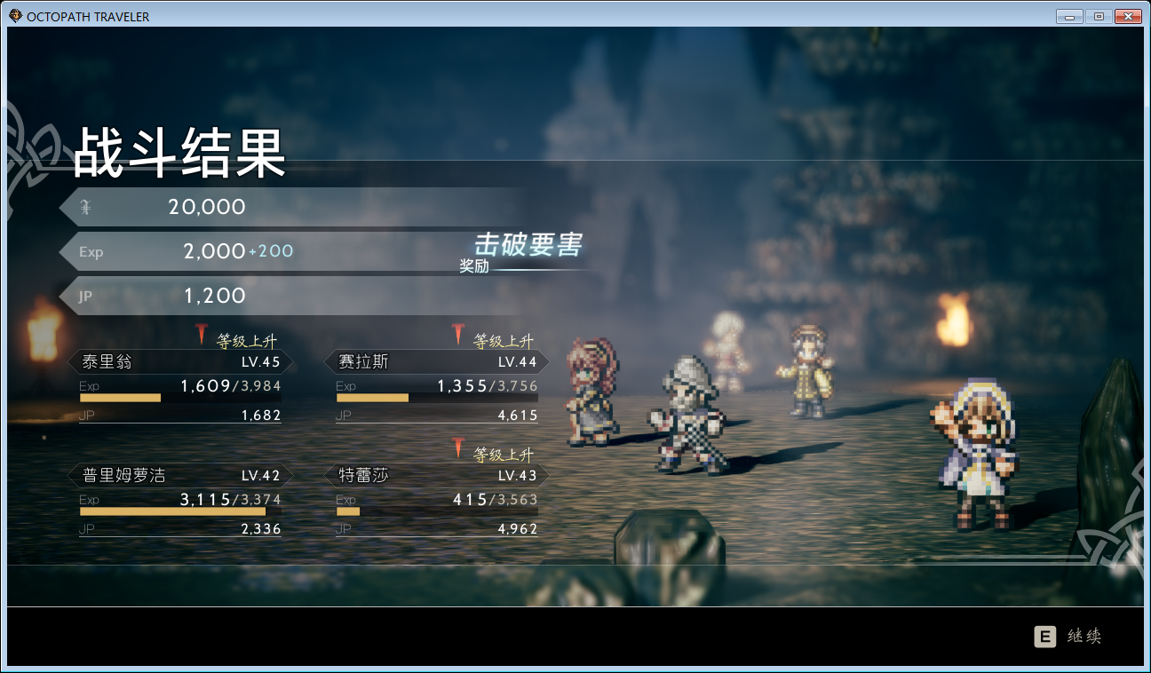 有了以上的装备,即使队伍等级低都能打高十多级以上的地图。这游戏的等级实际上不那么重要,重要的是JP,学职业技能和被动技能,被动技能的搭配很重要,如果不浪费JP乱学技能的话,也不需要花多少时间练级,就算要练也可以等剑士和神官的主线通关后拿队长徽章和友情徽章,再配合隐藏4职业里的JP获得增加和EXP增加,练级效率更高
