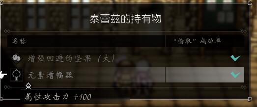 格兰波特有一个屋里有个NPC老婆婆,外面有一个6星强度的人守门,剑士大概20级不到兼职药师靠毒能确保单挑胜利,然后学者20级左右对里面的老婆婆探查有14%的成功率(需要多次SL成功),效果是偷窃成功率上升,这样,格兰波特一大堆NPC的道具都能轻松偷到