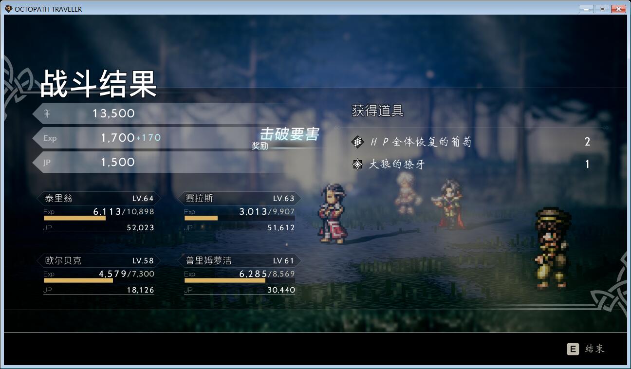 我这次玩的就是盗贼开局,然后逆时针方向收其他7个队友:药师、舞女、剑士、商人、学者、神官、猎人。收齐所有队友需要把各人的第一章剧情都完成,然后把所有副职业祠堂都找到,把24个城镇都利用跑酷探索出来