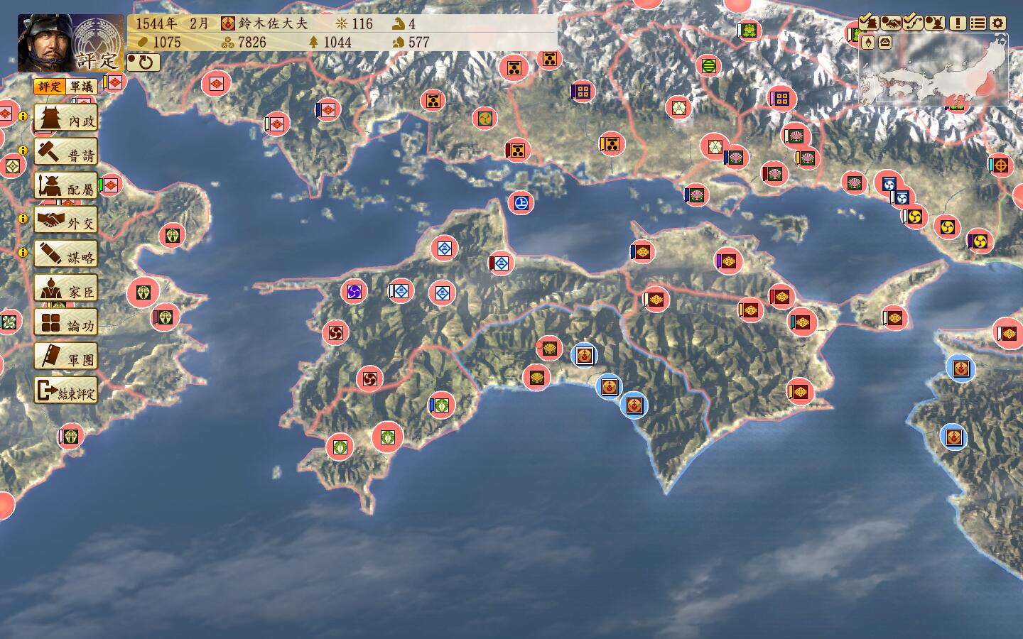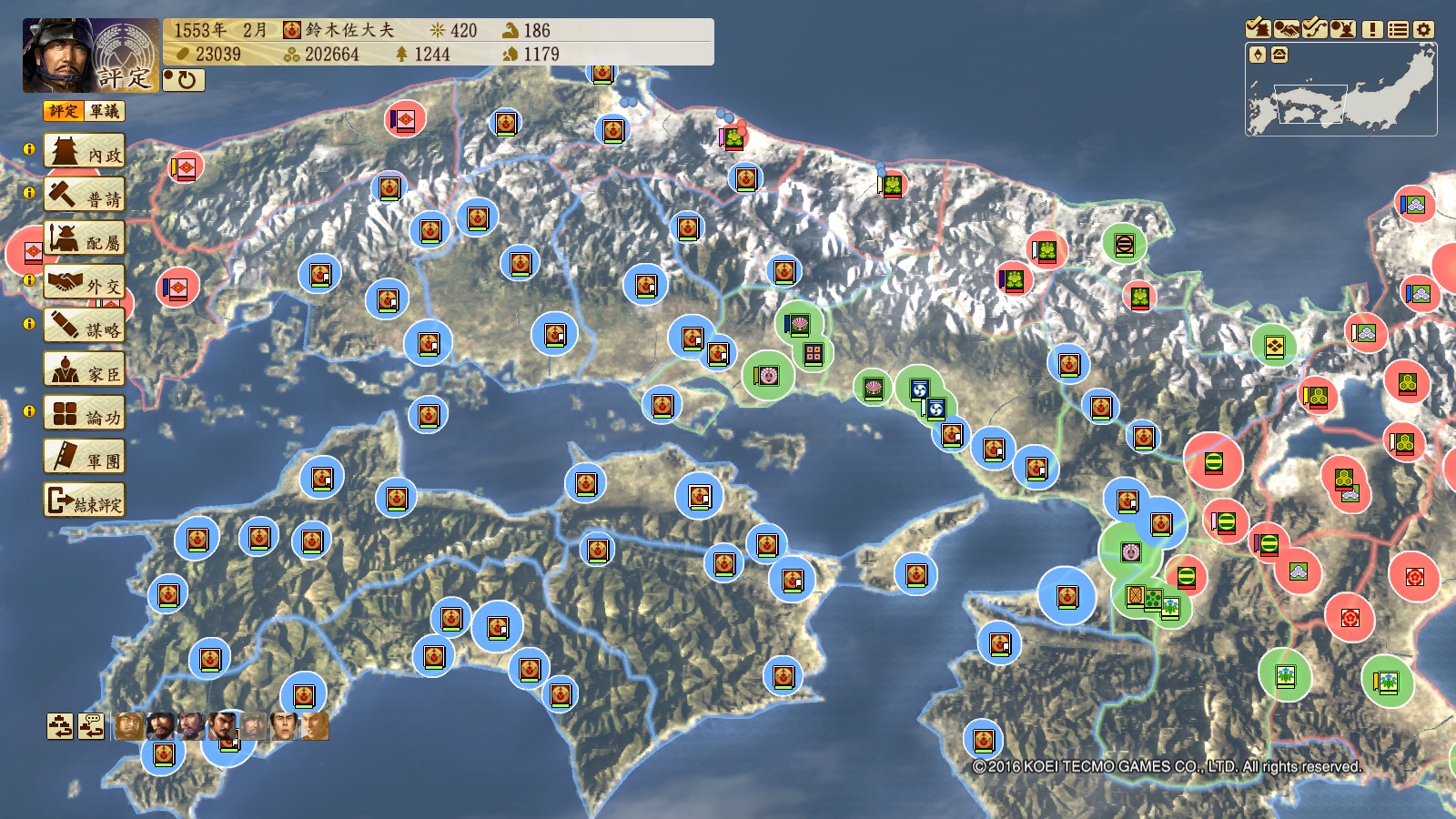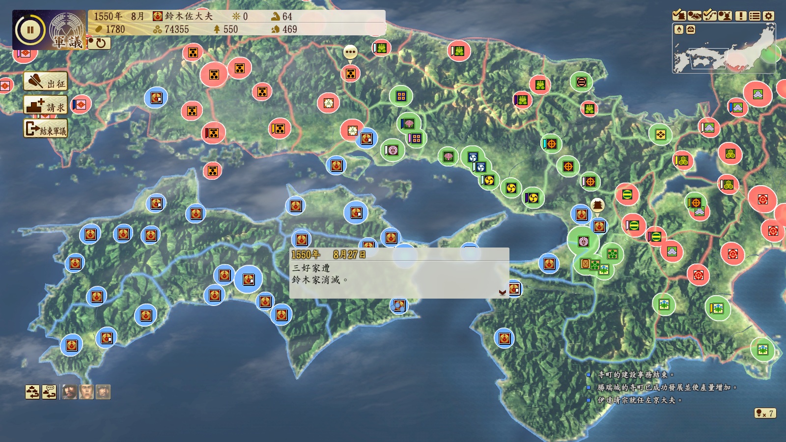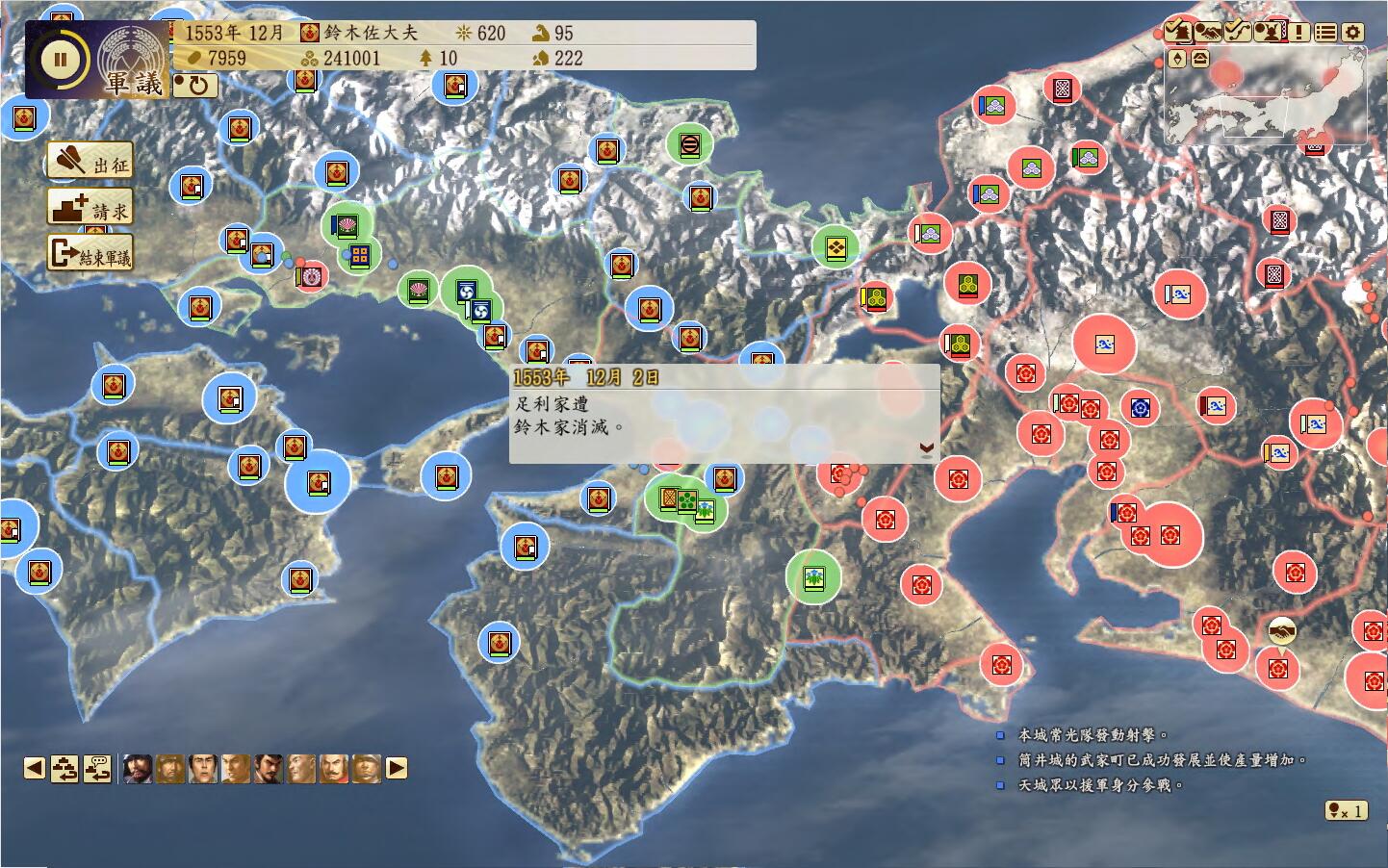 1553年12月,将军家gg,二条御所到手,可以继续扩张等支配30国开总无事令。