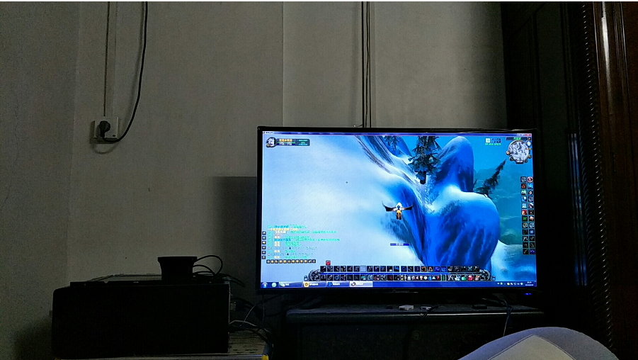搬了台43寸的非智能电视过来当显示器,放床尾,离着两米多,接个无线键盘鼠标,躺玩