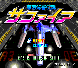 “銀河婦警伝説サファイア”是动漫游戏系列“銀河お嬢様伝説ユナ”的一个周边游戏。游戏是纵版射击游戏,主角在4人中选择,可支持双打。这个游戏的最大特点是其画面,除了制作非常精良的背景外,尤其是敌人形象居然有不少是3D造型,对于PCE这样的主机这点着实令人称赞。这款游戏的正版现在很难入手,网上价格炒得很高。在此强烈推荐。