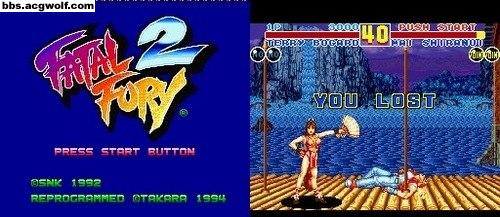 FTG巨厂snk的一个著名系列,以极限流派的坂崎良和罗伯特为主角,可以看出当时为了对抗极受欢迎的CAPCOM街头霸王系列所做出的种种努力,轻重手脚四键,气槽,挑衅,快速前冲后退,超必杀技等等都是不同于SF系列的经典设定,延用至今。sfc版活用放缩功能,超大的人物造型,在当时看到可是眼前一亮,爱不释手啊。