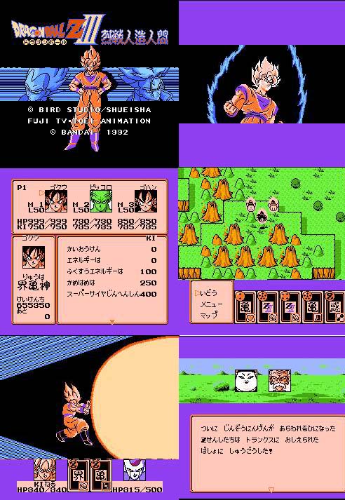 个人最喜欢第三作,因为终于可以使用超级赛亚人了,游戏系统也改变了,变得十分有趣,卡片不单单只是代表攻击力和防御力还有多种用途,每个人的必杀都做得很华丽感觉fc上能有这么好的画面实在令人惊喜,游戏中有很多练级的小游戏可以轻松的练到50级,就算没有悟空人造人也不足为惧
