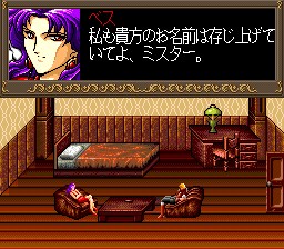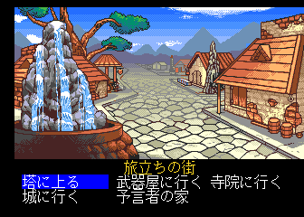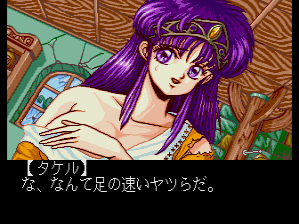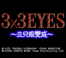 3×3 EYES(三只眼)是高田裕三的漫画作品。这部作品我了解得不多,只是看过一部动画,当时给我了一种阴暗、诡异的感觉。这是根据漫画做出的一款文字冒险游戏,最初在PC98上推出,现在移植到PCE CD上后借助CD的大容量增加了全程语音效果。游戏的漫画风格非常显著。