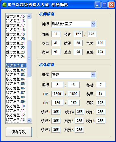 [SFC]《第三次超级机器人大战》修改器 For Snes9X模拟器