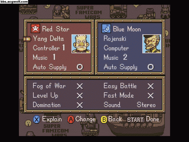 从这里俺们可以看到SuperFamicomWars的功能还着实不少呢,居然还有战争迷雾<!--emo&^_^-->[img]style_emoticons/<#EMO_DIR#>/happy.gif"border="0"style="vertical-align:middle"alt="happy.gif"/><!--endemo-->