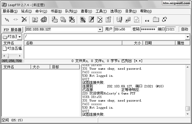 FTP我是用LeapFTP 2.7.4登录的,一直提示530错误,进不去…………