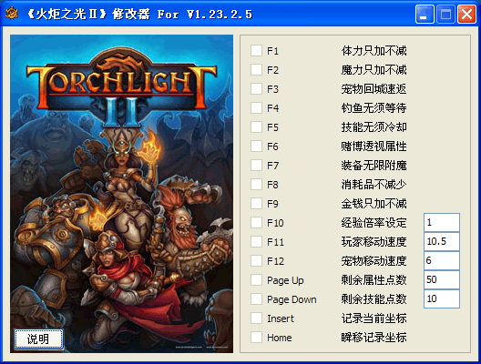 标题:《火炬之光Ⅱ》修改器 For V1.22.2.4/V1.23.2.5