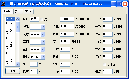 SNDATA1.CIM 都市、势力、宝物数据在这个文件里