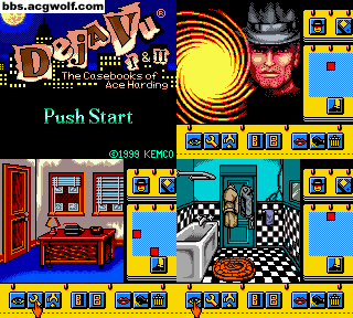 著名的文字类侦探游戏,中规中矩,在很多主机上出现过,不过最早的似乎还是FC。DejaVu在FC上很受欢迎,出现过一系列的同类作品。该作品系列的音乐全都非常好听,可以使人沉静下来思考,FC的重低音风格在GBC上得到继承,画面以及色彩则更为漂亮。如果你对探案和解谜有兴趣的话,一定不要错过,这比柯南什么的要专业得多了。强烈推荐!