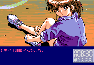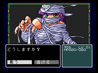 3×3 EYES(三只眼)是高田裕三的漫画作品。这部作品我了解得不多,只是看过一部动画,当时给我了一种阴暗、诡异的感觉。这是根据漫画做出的一款文字冒险游戏,最初在PC98上推出,现在移植到PCE CD上后借助CD的大容量增加了全程语音效果。游戏的漫画风格非常显著。