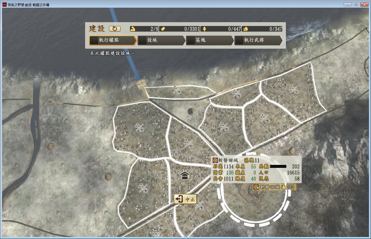 解锁本山和寺町,这个用来爆兵就很不错,如果改修了佛堂,城的最大民忠也有一点点加成,堪称开局神套装