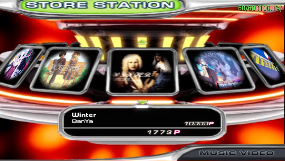 最后一个就是在Store里,可以用积分购买音乐的界面。由于大多都是舞曲,而且又有很多的Remix所以节奏性很强,对自己反应指法有信心的可以挑战Arcard模式里的那些神曲BPM180以上的。